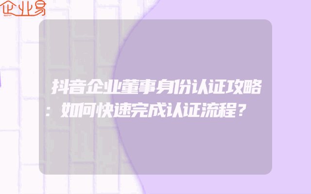 - 抖音企业董事身份认证攻略:如何快速完成认证流程?