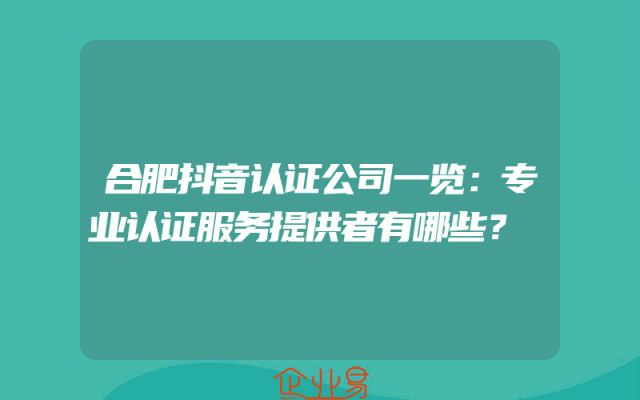 - 合肥抖音认证公司一览:专业认证服务提供者有哪些?