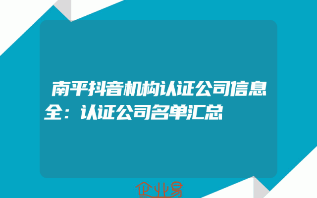 - 南平抖音机构认证公司信息全:认证公司名单汇总