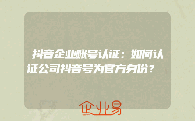 - 抖音企业账号认证运营全攻略:如何认证公司抖音号?
