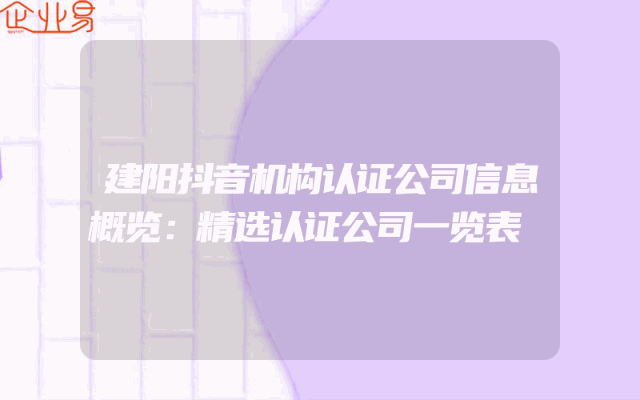 - 建阳抖音机构认证公司信息概览:精选认证公司一览表