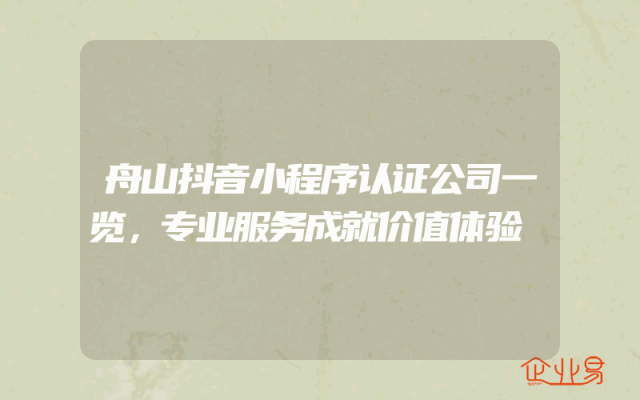 - 舟山抖音小程序认证公司一览,专业服务成就价值体验