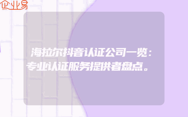 - 海拉尔抖音认证公司一览:专业认证服务提供者盘点。