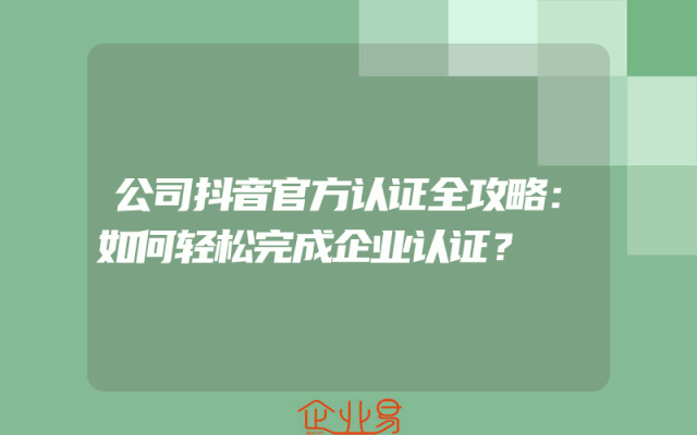 - 抖音企业认证全攻略:如何快速完成公司认证操作?