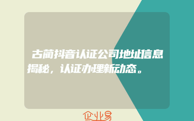 - 古蔺抖音认证公司地址信息揭秘,认证办理新动态。