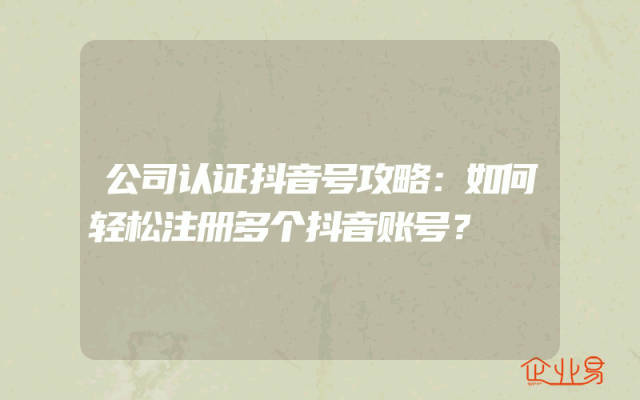 - 公司认证抖音号攻略:如何轻松注册多个抖音账号?