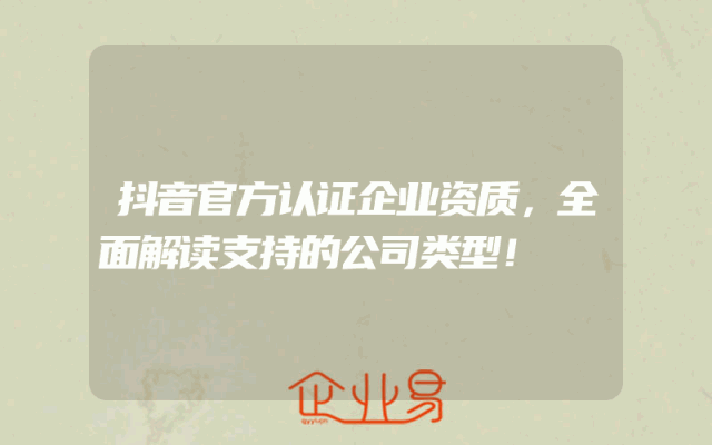 - 抖音官方认证企业资质,全面解读支持的公司类型!