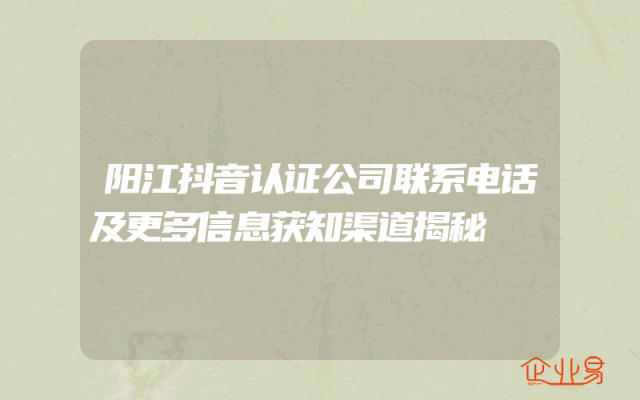 - 阳江抖音认证公司联系电话及更多信息获知渠道揭秘