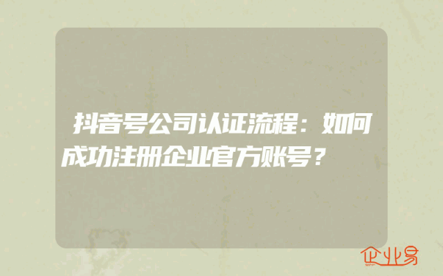 - 抖音号公司认证流程:如何成功注册企业官方账号?