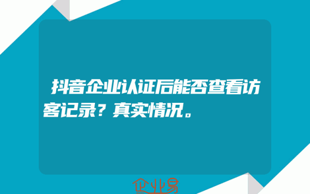 - 抖音企业认证后能否查看访客记录?真实情况。
