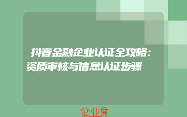 - 抖音金融企业认证全攻略:资质审核与信息认证步骤