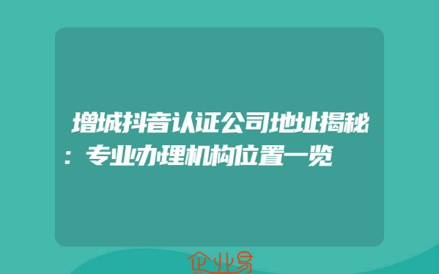 - 增城抖音认证公司地址揭秘:专业办理机构位置一览