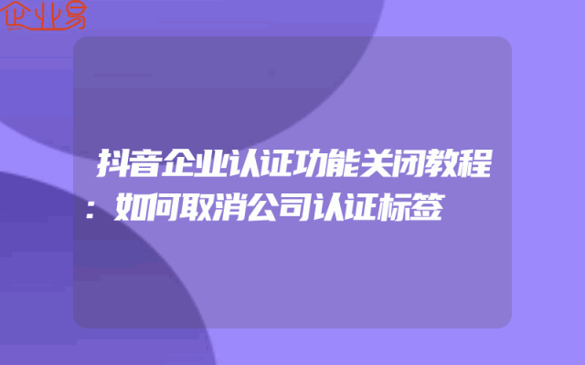 - 抖音企业认证功能关闭教程:如何取消公司认证标签一、了解抖音企业认证功能随着抖音平台的不断发展,越来越多的企业选择在抖音上进行注册和认证,以此提高品牌曝光和知名度。然而,在某些情况下,企业可能需要取消其认证标签。为此,首先需要了解抖音企业认证