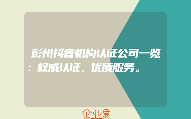 - 彭州抖音机构认证公司一览:权威认证,优质服务。