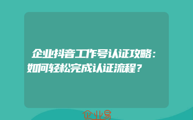 - 企业抖音工作号认证攻略:如何轻松完成认证流程?