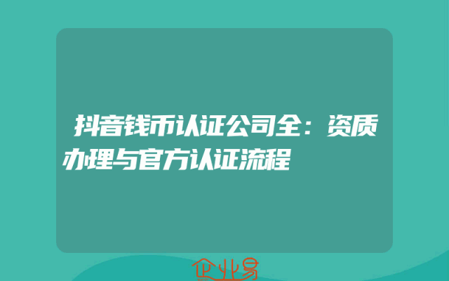 - 抖音钱币认证公司全:资质办理与官方认证流程