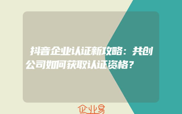 - 抖音企业认证新攻略:共创公司如何获取认证资格?
