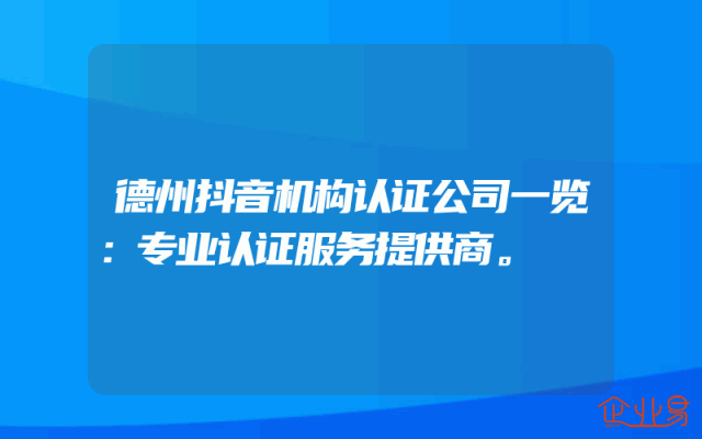 - 德州抖音机构认证公司一览:专业认证服务提供商。