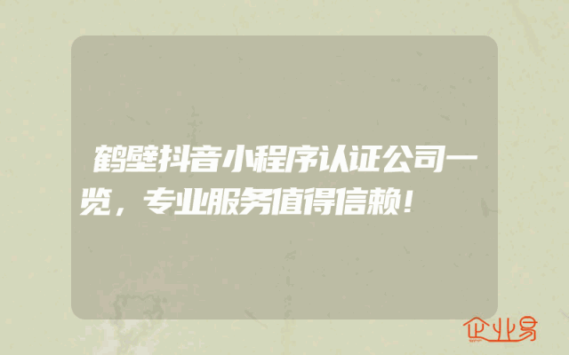 - 鹤壁抖音小程序认证公司一览,专业服务值得信赖!