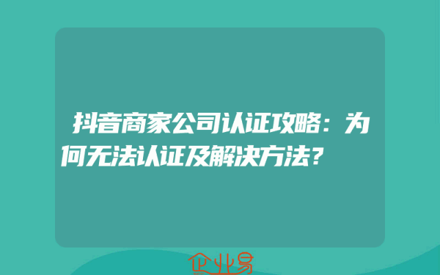 - 抖音商家公司认证攻略:为何无法认证及解决方法?