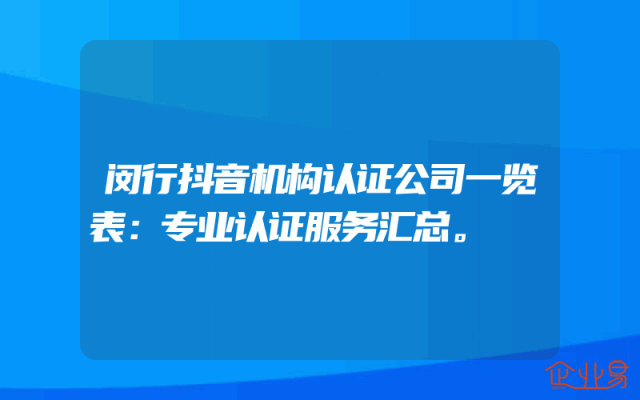 - 闵行抖音机构认证公司一览表:专业认证服务汇总。