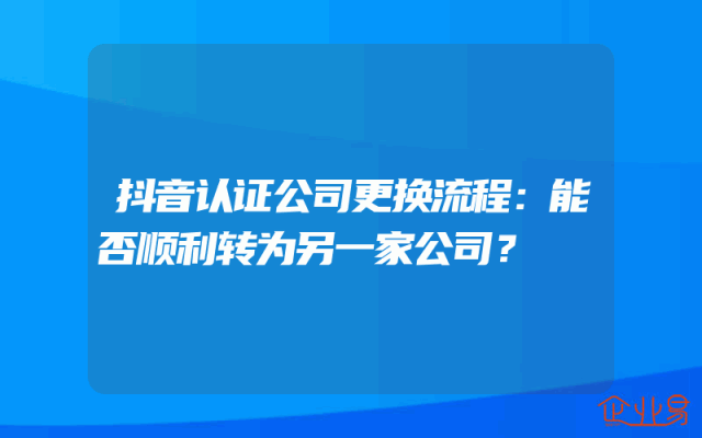 - 抖音认证公司更换流程:能否顺利转为另一家公司?