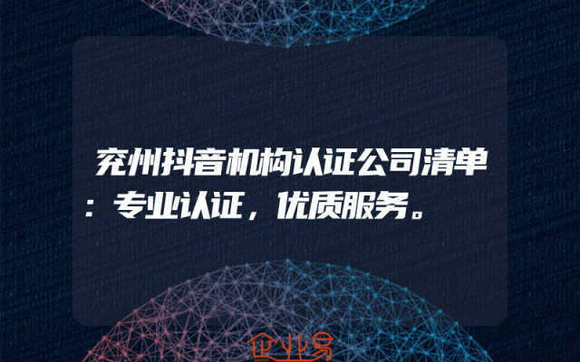 - 兖州抖音机构认证公司清单:专业认证,优质服务。