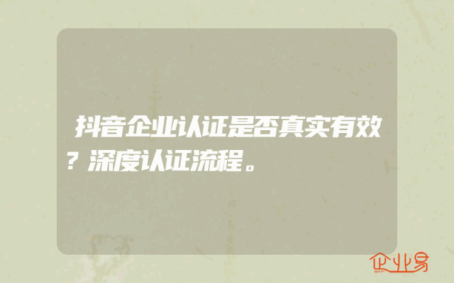 - 抖音企业认证是否真实有效?深度解析认证流程一、抖音企业认证的真实性抖音作为一个拥有数亿用户的社交媒体平台,其企业认证体系是经过严格审核的。企业认证的目的是为了确认并展示企业的真实身份,保障企业信息的真实性和合法性,为用户提供一个可信赖的社交