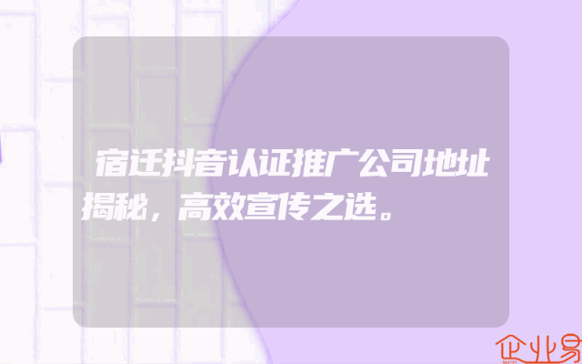 - 宿迁抖音认证推广公司地址揭秘,高效宣传之选。