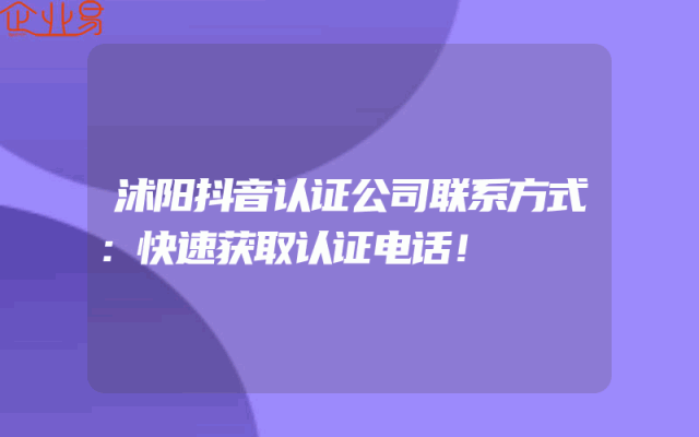 - 沭阳抖音认证公司联系方式:快速获取认证电话!