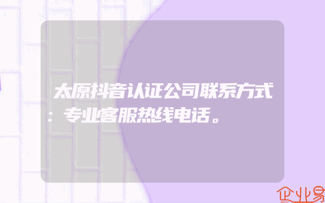 - 太原抖音认证公司联系方式:专业客服热线电话。