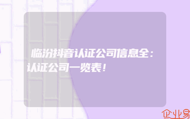 - 临汾抖音认证公司信息全:认证公司一览表!