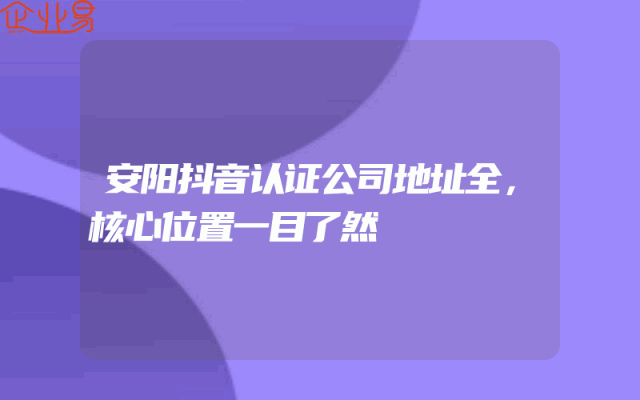 - 安阳抖音认证公司地址全,核心位置一目了然