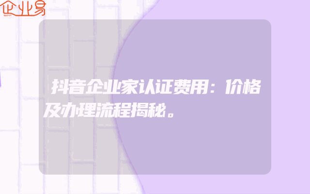 - 抖音企业家认证费用:价格及办理流程揭秘。