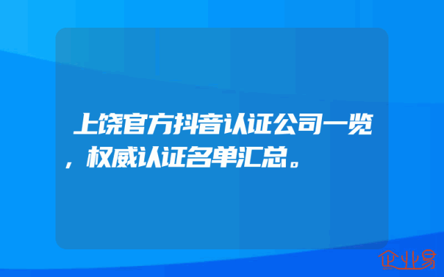 - 上饶官方抖音认证公司一览,权威认证名单汇总。