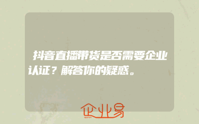 - 抖音直播带货是否需要企业认证?解答你的疑惑。