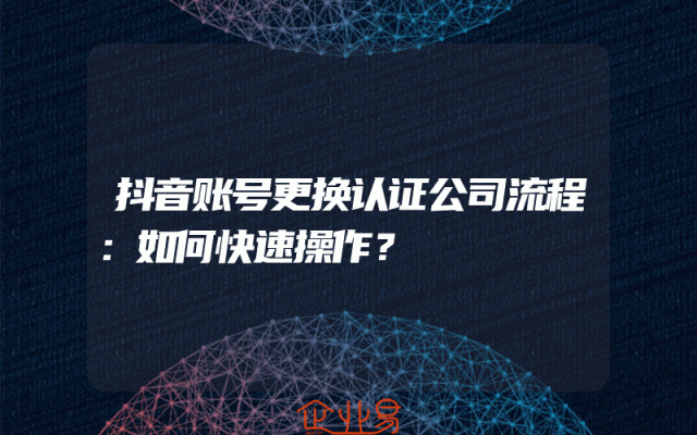 - 抖音账号更换认证公司流程详解:如何快速操作?一、了解更换认证公司的前提与准备在抖音平台上更换认证公司之前,首先需要明确相关政策和规定,确保你的账号符合更换认证公司的条件。常见的条件包括账号无违规记录、已完成实名认证等。同时,需要准备好相关材