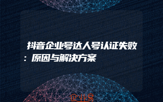 - 抖音企业号达人号认证失败解析:原因与解决方案抖音作为社交媒体平台的佼佼者,拥有众多用户和商家。企业在抖音上开通企业号达人号,进行品牌推广和营销活动时,有时会遇到认证失败的困扰。本文将详细解析认证失败的原因