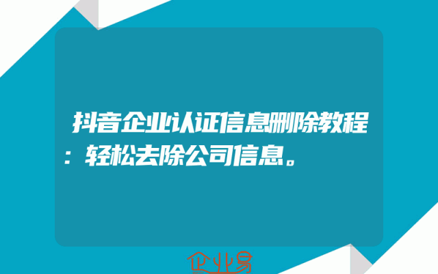 - 抖音企业认证信息删除教程:轻松去除公司信息一、了解抖音企业认证信息的重要性在数字化时代,社交媒体平台已成为企业宣传和推广的重要渠道。抖音作为一款领先的短视频社交平台,吸引了大量企业入驻。完成企业认证后,相关信息会显示在抖音主页上,有助于提升