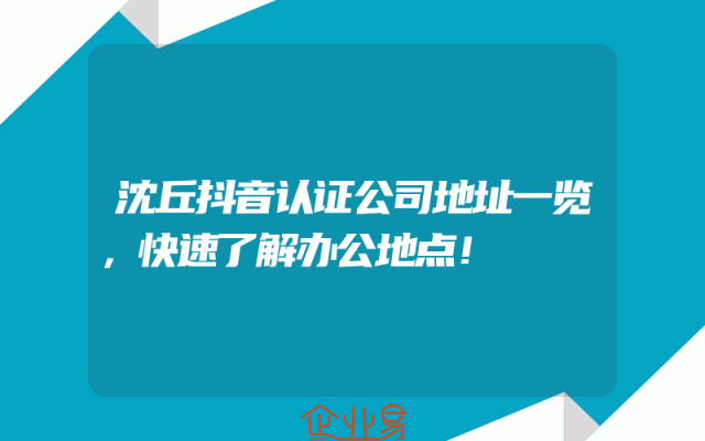 - 沈丘抖音认证公司地址一览,快速了解办公地点!