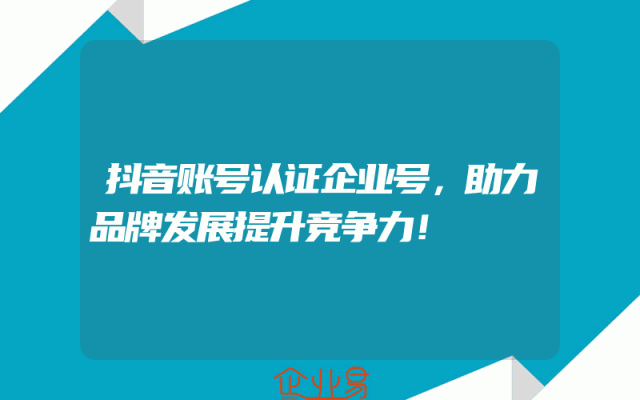 - 抖音账号认证企业号,助力品牌发展提升竞争力!