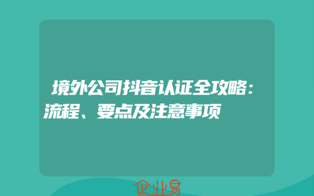 - 境外公司抖音认证全攻略:流程、要点及注意事项
