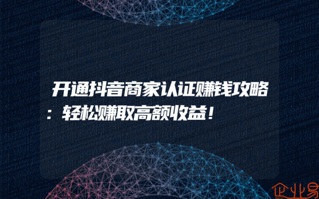 - 开通抖音商家认证赚钱攻略:轻松赚取高额收益!