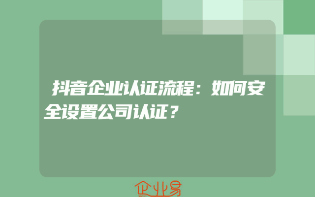 - 抖音企业认证流程详解:如何安全设置公司认证?一、了解抖音企业认证的重要性在当今数字化时代,抖音已成为众多企业开展网络营销的重要平台。通过抖音企业认证,企业不仅可以提升品牌形象,还能获得更多的曝光机会和信任度。因此,了解抖音企业认证的流程和安