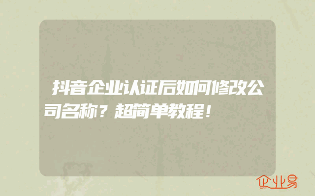 - 抖音企业认证后如何修改公司名称?超简单教程!