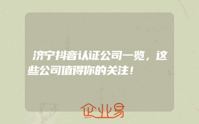- 济宁抖音认证公司一览,这些公司值得你的关注!