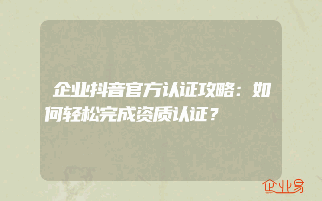 - 企业抖音官方认证攻略:如何轻松完成资质认证?