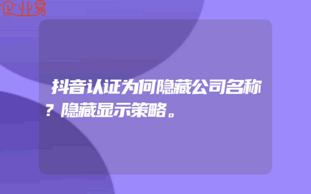 - 抖音认证为何隐藏公司名称?隐藏显示策略。