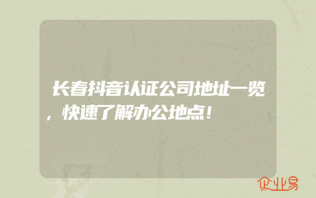 - 长春抖音认证公司地址一览,快速了解办公地点!