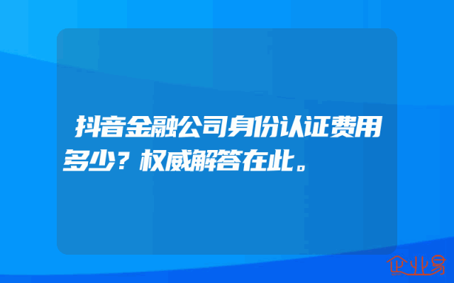 - 抖音金融公司身份认证费用多少?权威解答在此。